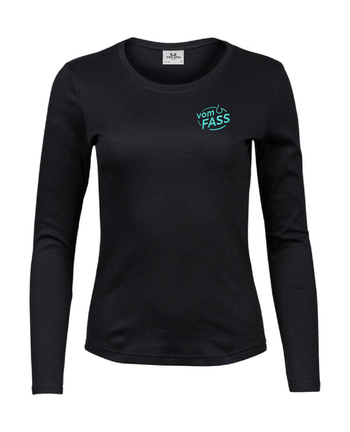 Damen Longsleeve, Bestickung türkis NUR linke Brust